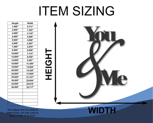 Custom Metal You and Me Wall Art | Indoor Outdoor | Up to 46" | 20+ Color Options