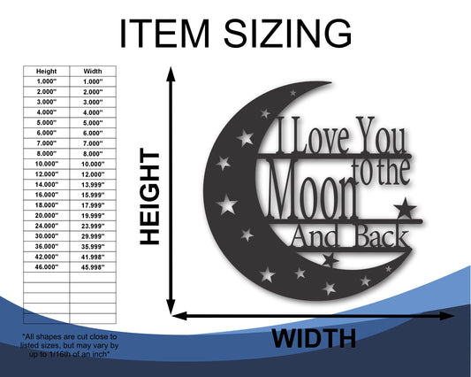 Custom Metal I Love You to the Moon and Back Wall Art | Indoor Outdoor | Up to 46" | 20+ Color Options