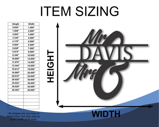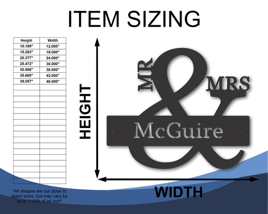 Custom Metal Mr and Mrs Wall Art | Indoor Outdoor | Up to 46" | 20+ Color Options