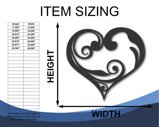 Custom Metal Heart Wall Art | Indoor Outdoor | Up to 46" | 20+ Color Options