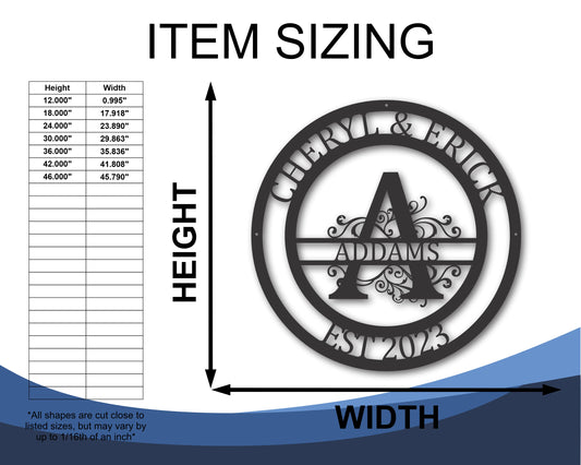 Custom Metal Family Room Established Monogram - 20+ Color Options