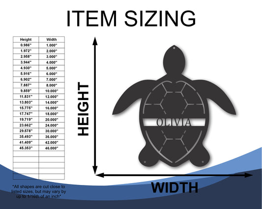Custom Metal Sea Turtle Monogram Wall Art | Indoor Outdoor | Up to 46" | 20+ Color Options