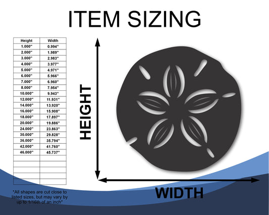 Custom Metal Sand Dollar Wall Art | Indoor Outdoor | Up to 46" | 20+ Color Options