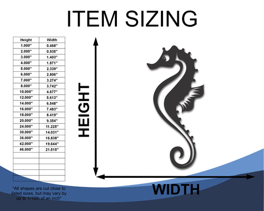 Custom Metal Seahorse Wall Art | Indoor Outdoor | Up to 46" | 20+ Color Options