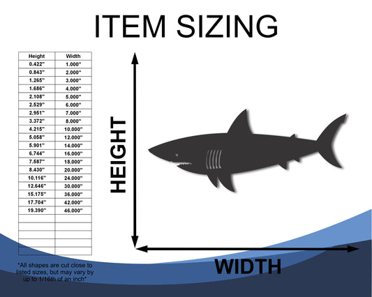 Custom Metal Shark Wall Art | Indoor Outdoor | Up to 46" | 20+ Color Options
