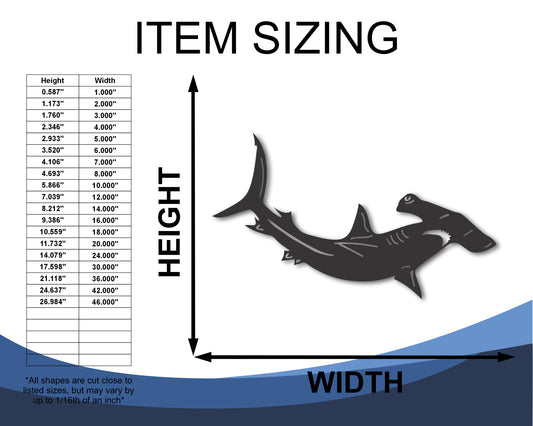 Custom Metal Hammerhead Shark Wall Art | Indoor Outdoor | Up to 46" | 20+ Color Options