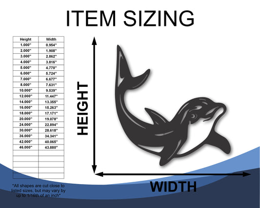 Custom Metal Dolphin Wall Art | Indoor Outdoor | Up to 46" | 20+ Color Options