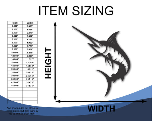 Custom Metal Marlin Wall Art | Indoor Outdoor | Up to 46" | 20+ Color Options