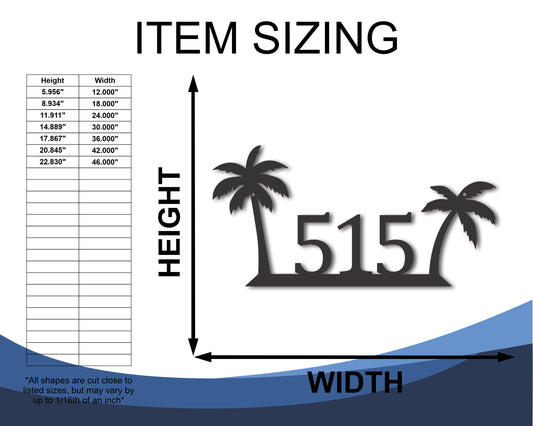 Metal Tropical Palm Trees House Number Sign | 20+ Color Options