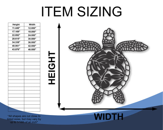 Custom Metal Hibiscus Turtle Wall Art | Indoor Outdoor | Up to 46" | 20+ Color Options