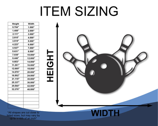 Custom Metal Bowling Metal Wall Art | Indoor Outdoor | Up to 46" | 20+ Color Options