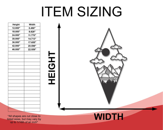 Metal Diamond Mountain Landscape Wall Art | Diamond Sun And Mountains Wall Decor | 15 Color Options