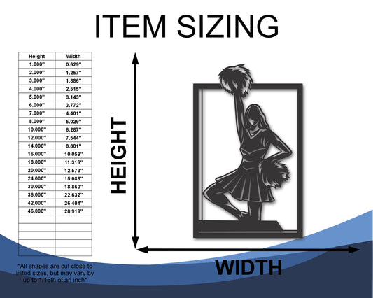 Custom Metal Cheerleader Wall Art | Indoor Outdoor | Up to 46" | 20+ Color Options