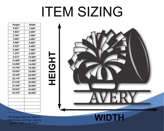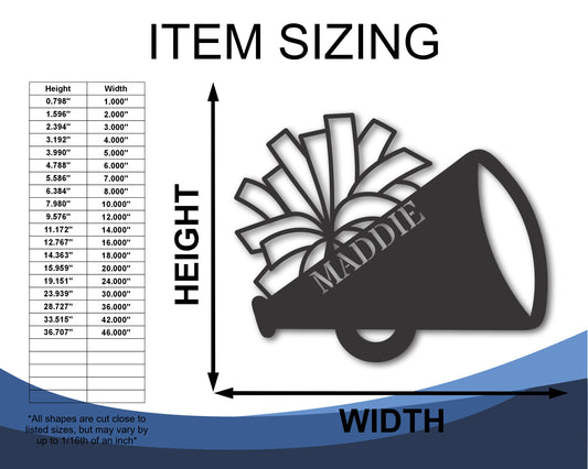 Custom Metal Cheerleading Wall Art | Indoor Outdoor | Up to 46" | 20+ Color Options