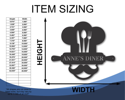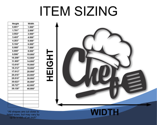 Custom Metal Chef Wall Art | Indoor Outdoor | Up to 46" | 20+ Color Options