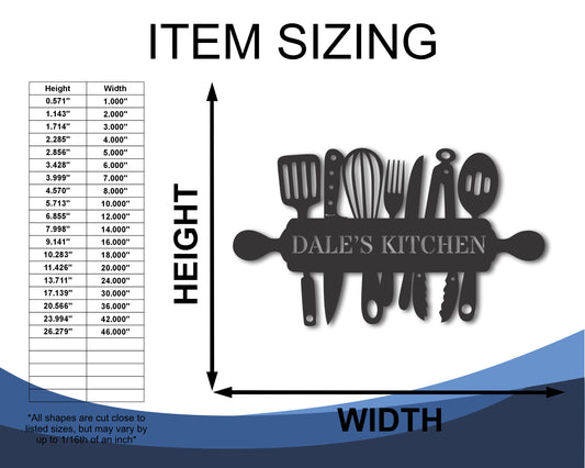 Custom Metal Cooking Utensils Wall Art | Indoor Outdoor | Up to 46" | 20+ Color Options