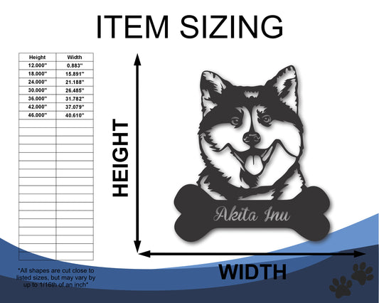 Custom Metal Akita Inu Wall Art - Metal Dog Breed Sign - 20+ Color Options - Up to 46"