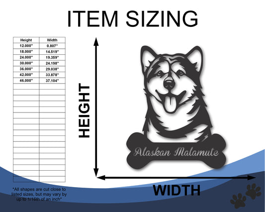Custom Metal Alaskan Malamute Wall Art - Metal Dog Breed Sign - 20+ Color Options - Up to 46"