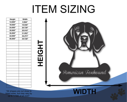 Custom Metal American Foxhound Wall Art - Metal Dog Breed Sign - 20+ Color Options - Up to 46"