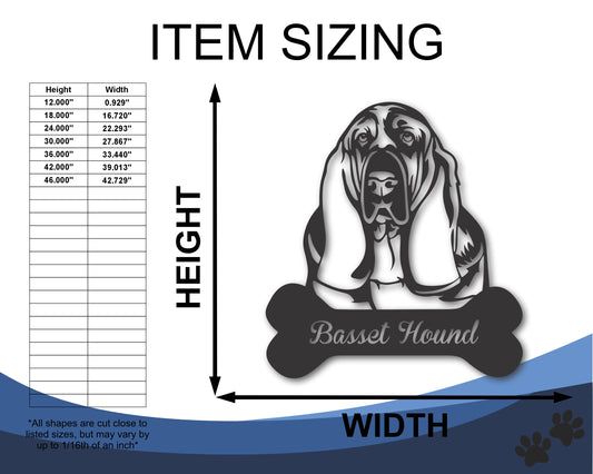 Custom Metal Basset Hound Wall Art - Metal Dog Breed Sign - 20+ Color Options - Up to 46"