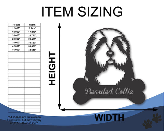 Custom Metal Bearded Collie Wall Art - Metal Dog Breed Sign - 20+ Color Options - Up to 46"