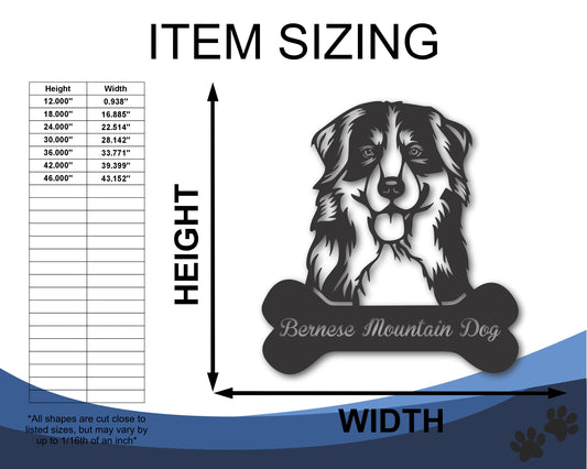 Custom Metal Bernese Mountain Wall Art - Metal Dog Breed Sign - 20+ Color Options - Up to 46"