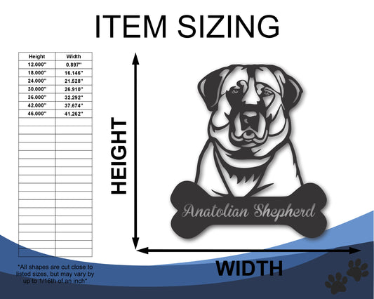 Custom Metal Anatolian Shepherd Wall Art - Metal Dog Breed Sign - 20+ Color Options - Up to 46"