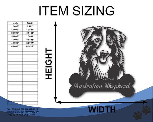 Custom Metal Australian Shepherd Wall Art - Metal Dog Breed Sign - 20+ Color Options - Up to 46"