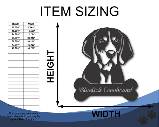Custom Metal Bluetick Coonhound Wall Art - Metal Dog Breed Sign - 20+ Color Options - Up to 46"