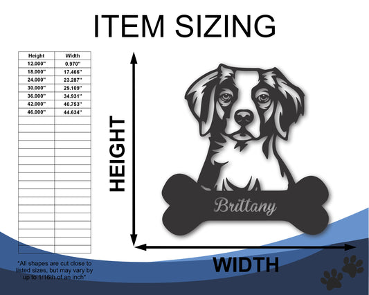 Custom Metal Brittany Wall Art - Metal Dog Breed Sign - 20+ Color Options - Up to 46"
