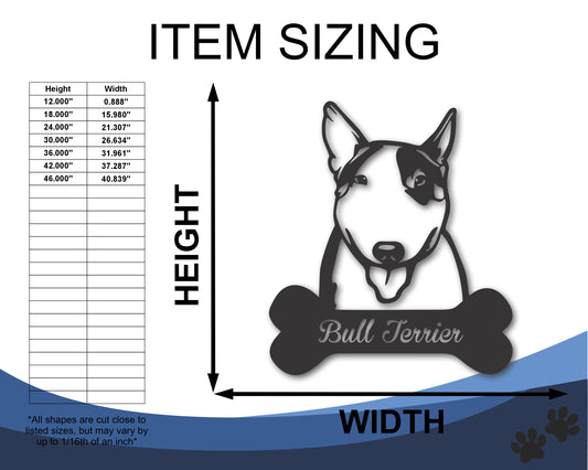 Custom Metal Bull Terrier Wall Art - Metal Dog Breed Sign - 20+ Color Options - Up to 46"
