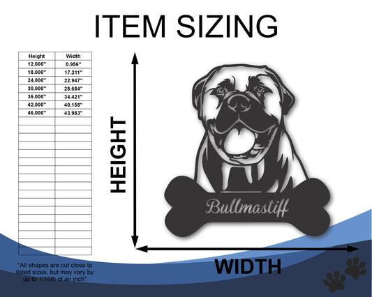 Custom Metal Bullmastiff Wall Art - Metal Dog Breed Sign - 20+ Color Options - Up to 46"
