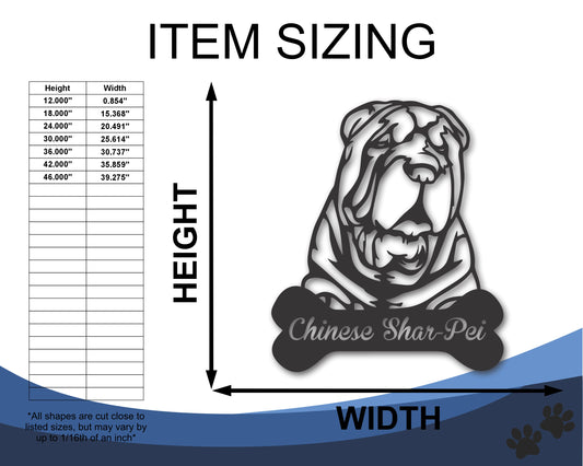 Custom Metal Chinese Shar Pei Wall Art - Metal Dog Breed Sign - 20+ Color Options - Up to 46"
