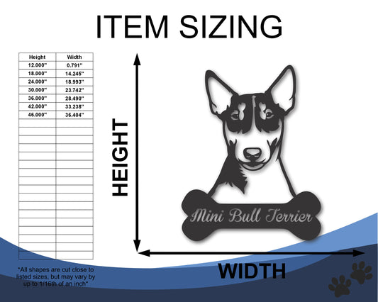 Custom Metal Mini Bull Terrier Wall Art - Metal Dog Breed Sign - 20+ Color Options - Up to 46"