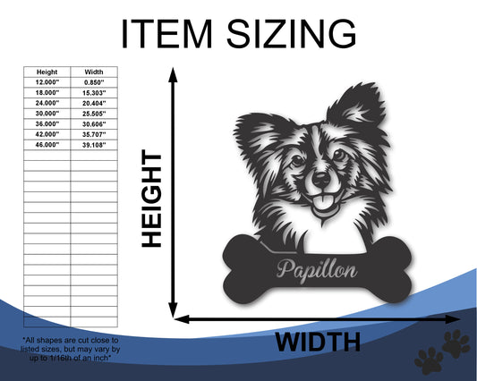 Custom Metal Papillon Wall Art - Metal Dog Breed Sign - 20+ Color Options - Up to 46"