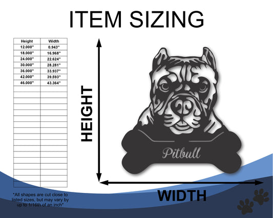 Custom Metal Pitbull Wall Art - Metal Dog Breed Sign - 20+ Color Options - Up to 46"