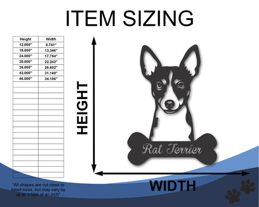 Custom Metal Rat Terrier Wall Art - Metal Dog Breed Sign - 20+ Color Options - Up to 46"