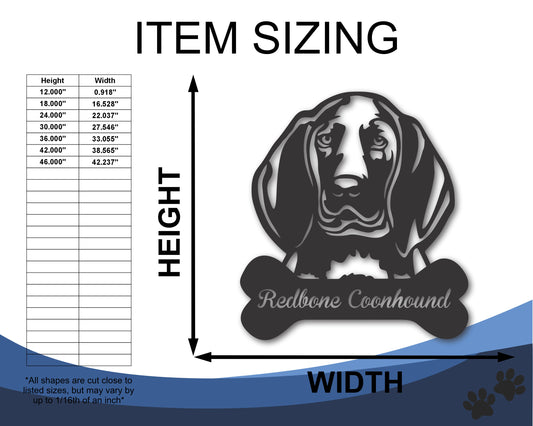 Custom Metal Redbone Wall Art - Metal Dog Breed Sign - 20+ Color Options - Up to 46"