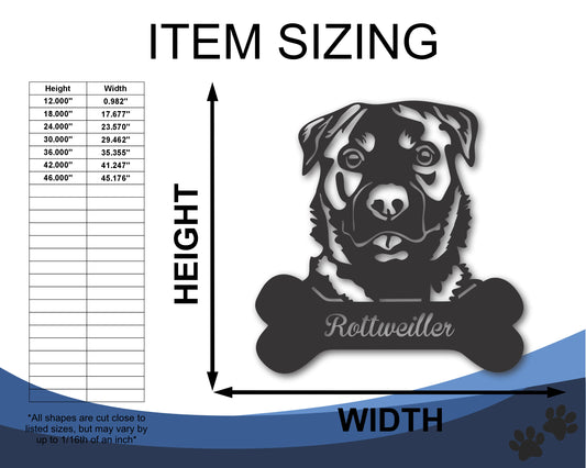 Custom Metal Rottweiller Wall Art - Metal Dog Breed Sign - 20+ Color Options - Up to 46"
