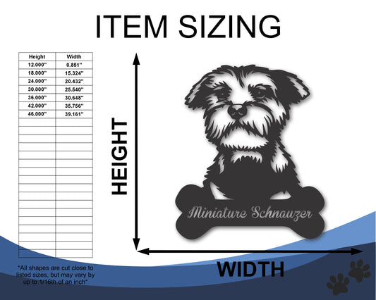 Custom Metal Miniature Schnauzer Wall Art - Metal Dog Breed Sign - 20+ Color Options - Up to 46"