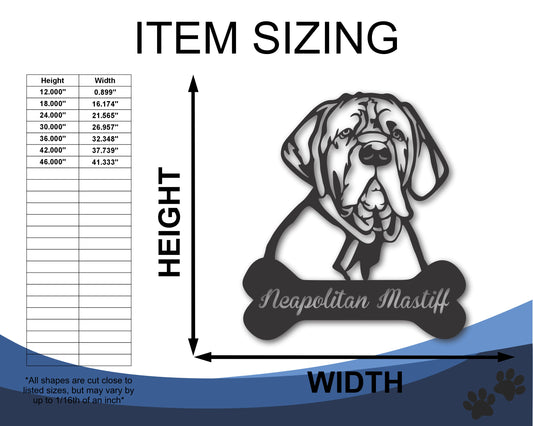 Custom Metal Neapolitan Mastiff Wall Art - Metal Dog Breed Sign - 20+ Color Options - Up to 46"