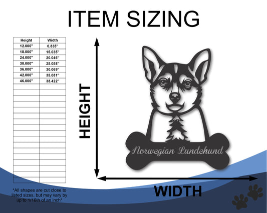 Custom Metal Norwegian Lundehund Wall Art - Metal Dog Breed Sign - 20+ Color Options - Up to 46"