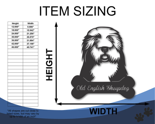 Custom Metal Old English Sheepdog Wall Art - Metal Dog Breed Sign - 20+ Color Options - Up to 46"