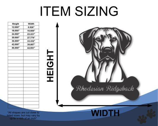Custom Metal Rhodesian Ridgeback Wall Art - Metal Dog Breed Sign - 20+ Color Options - Up to 46"