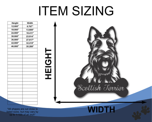 Custom Metal Scottish Terrier Wall Art - Metal Dog Breed Sign - 20+ Color Options - Up to 46"