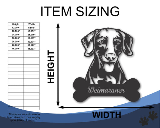 Custom Metal Weimaraner Wall Art - Metal Dog Breed Sign - 20+ Color Options - Up to 46"