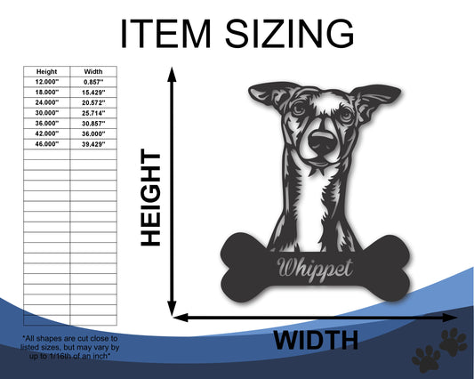 Custom Metal Whippet Wall Art - Metal Dog Breed Sign - 20+ Color Options - Up to 46"