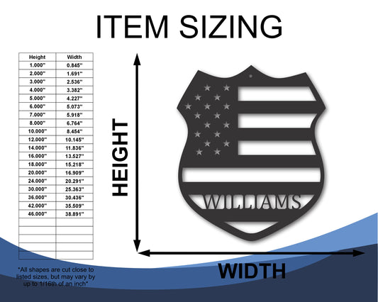 Custom Metal Flag Police Badge Wall Art | Indoor Outdoor | Up to 46" | 20+ Color Options