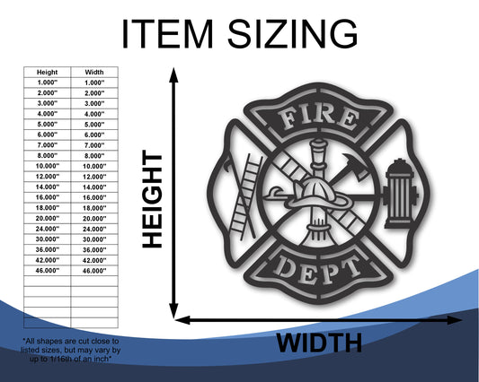 Custom Metal Fire Dept. Wall Art | Indoor Outdoor | Up to 46" | 20+ Color Options