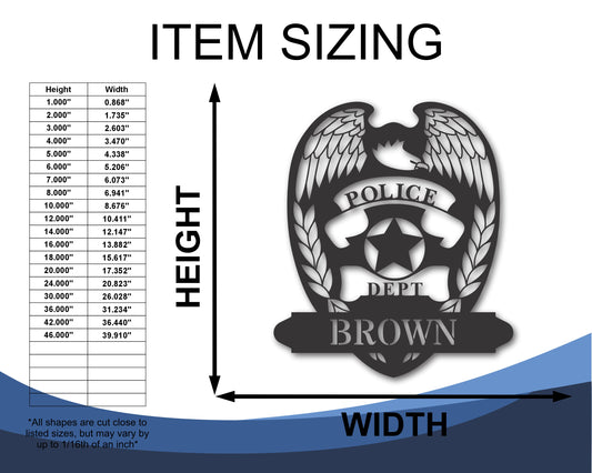 Custom Metal Police Badge Wall Art | Indoor Outdoor | Up to 46" | 20+ Color Options
